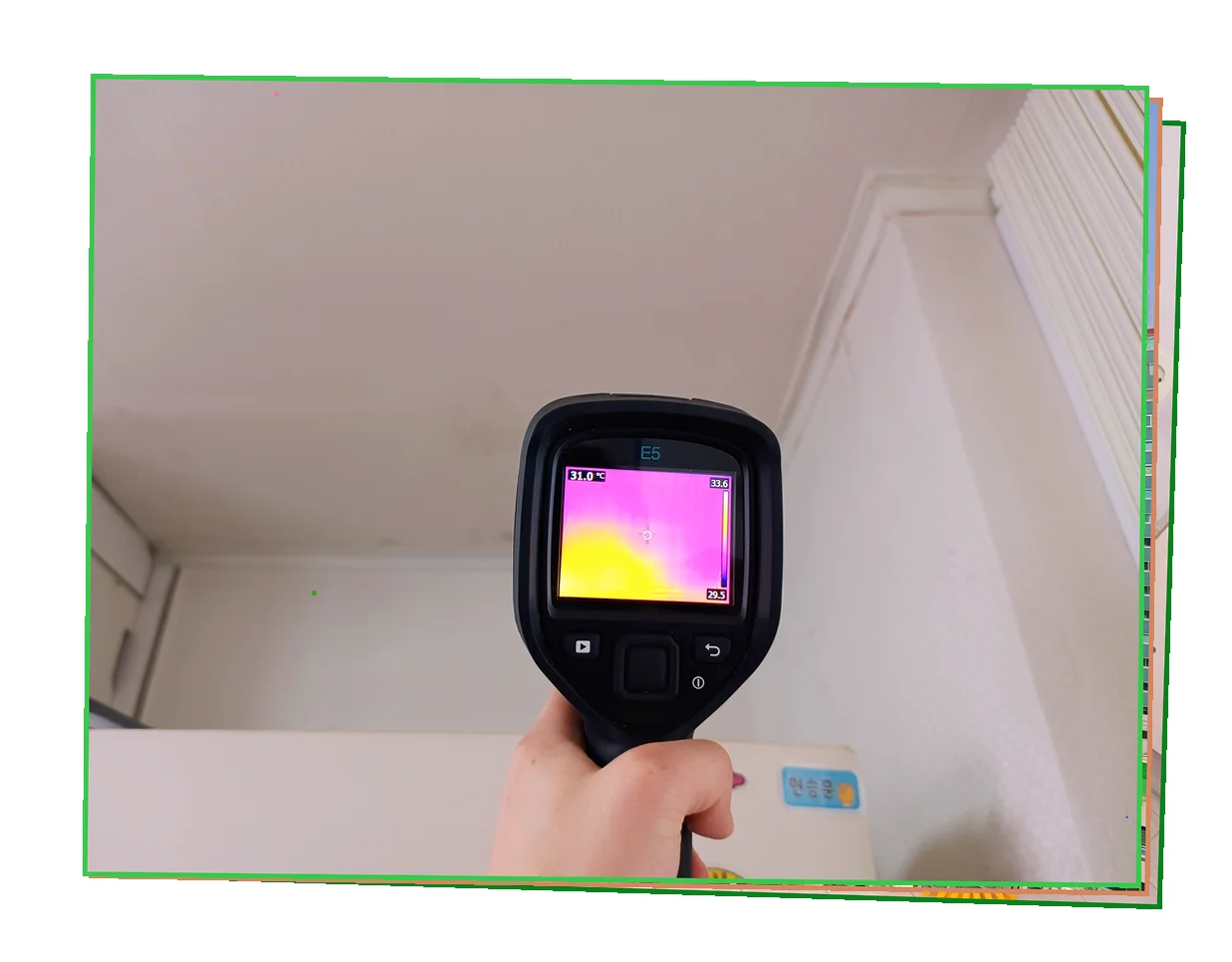 벽면과 바닥 전체에 습기가 퍼져있는 상황이었습니다.