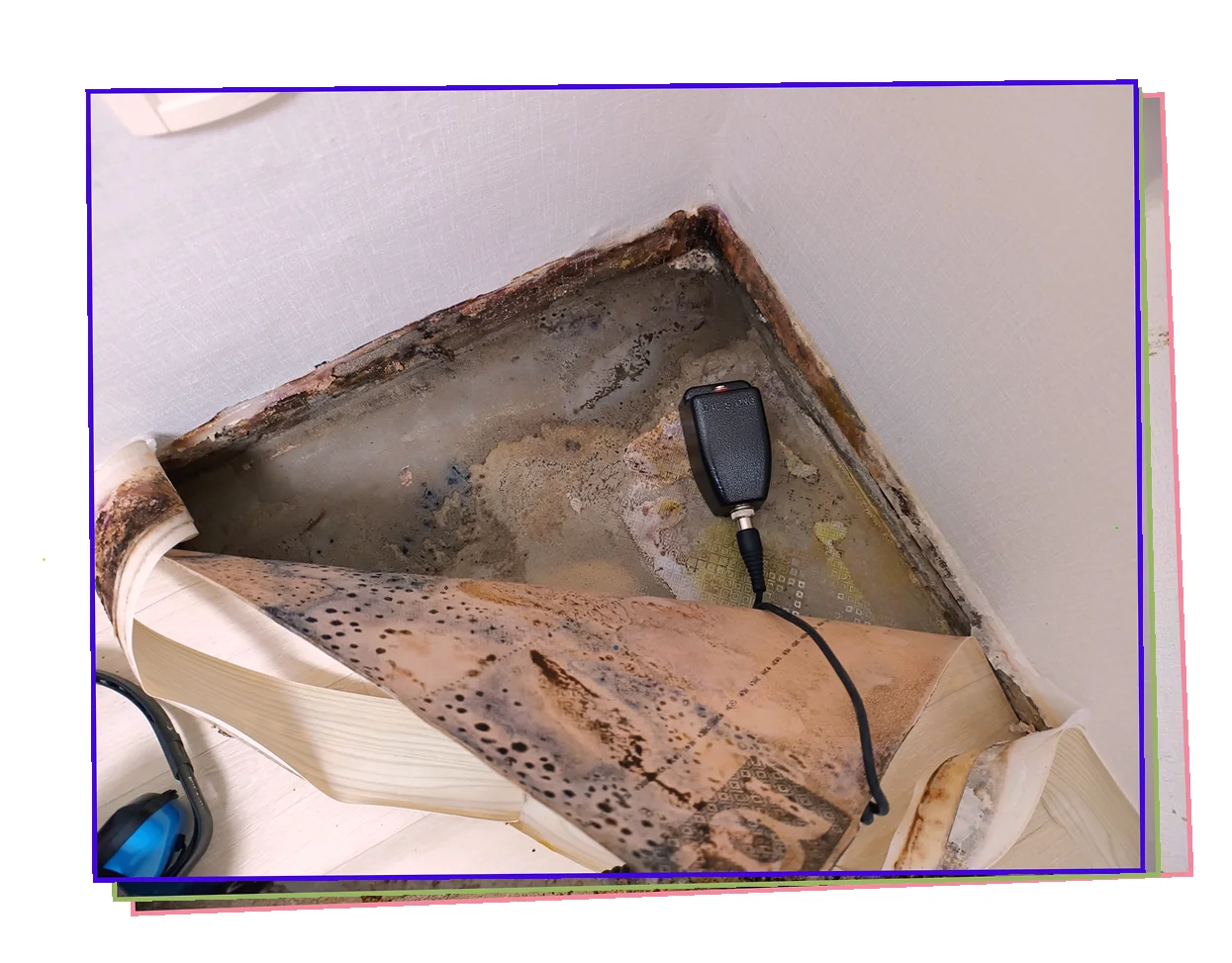 벽체와 천장 전반에 습기가 차 있었습니다.